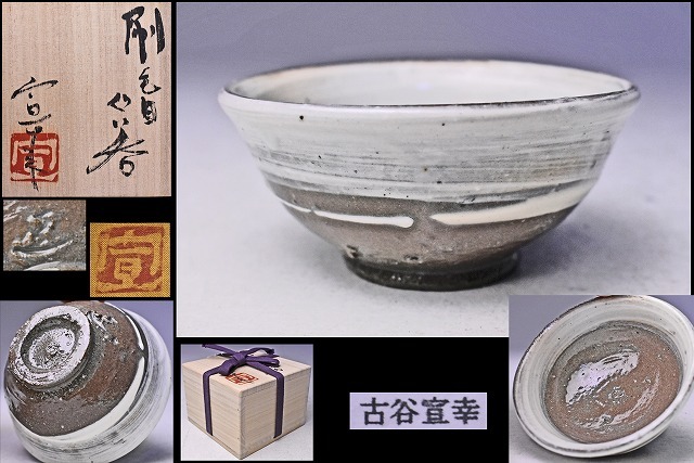 > 古谷宣幸 ★ 刷毛目ぐい呑 ★ 共箱 共布 栞 ★ 勢いのある刷毛目が良い景色の上作 ★ 酒器 ★ 信楽で作陶 ★