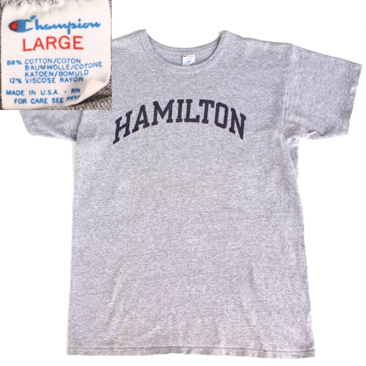 - (61113)極上80s ChampionチャンピオンMADE IN USA染み込みプリントTシャツL (ヴィンテージ オリジナル トリコタグ88/12アメリカ杢グレー)
