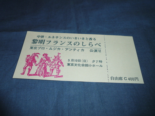 - ◆古い演劇・舞台 チケット半券⑮「黎明フランスのしらべ」東京プロ・ムジカ・アンティカ公演Ⅳ 未使用券