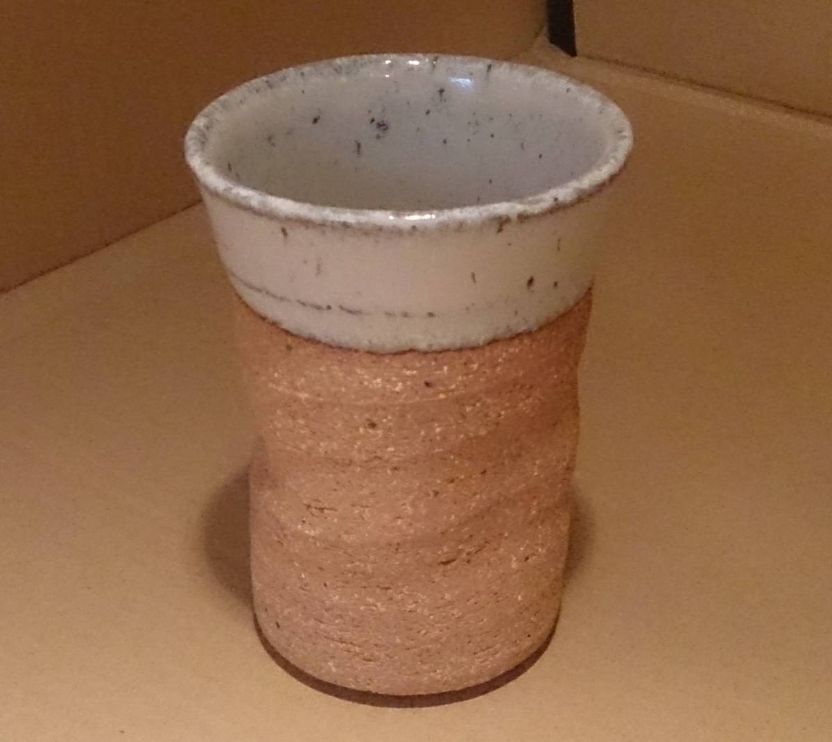 > 80s 用の美 信楽焼き 湯呑み 陶製 タンブラー オブジェ ツートンカラー ダブルテクスチャー※USED品/ヴィンテージ/1986年前後の焼き物/風情