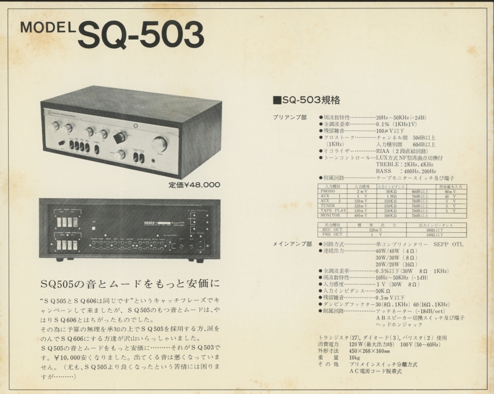 - LUXMAN SQ-503のカタログ ラックスマン 管2018