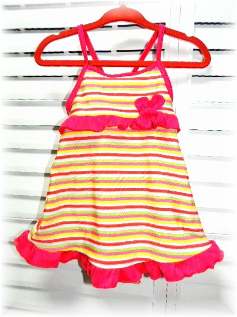 - 西松屋 お花飾り ワンピース水着 95cm カラフルカラーボーダー