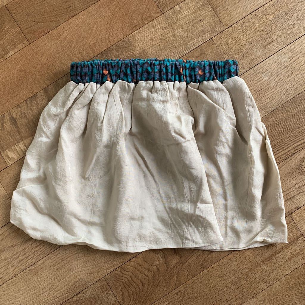 - ハンドメイド 子供服 手作り 女の子 ギャザースカート ベアトップ 個性的 衣装 1点物 ガーリー 幾何学模様 ベージュ ナチュラル系 上品