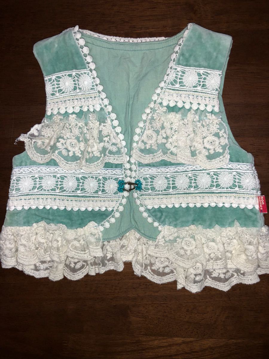 > 【ブーフーウー/ナチュラルブー】レースボレロ ベスト ジレ ガーリー 100㎝ 中古 水色
