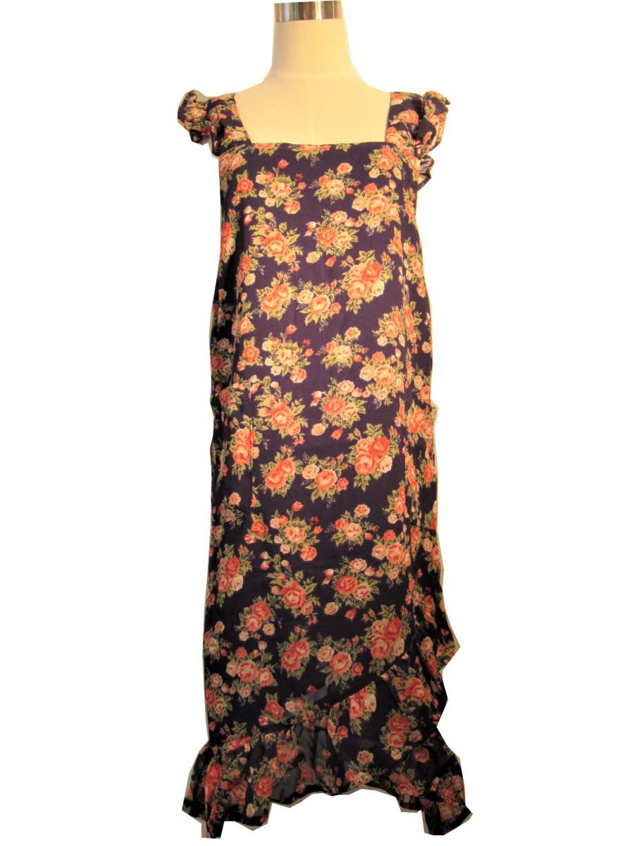 - エプロン キッチン エプロン 可愛いフリル薔薇プリントキッチン サービス品 ネイビー 510232