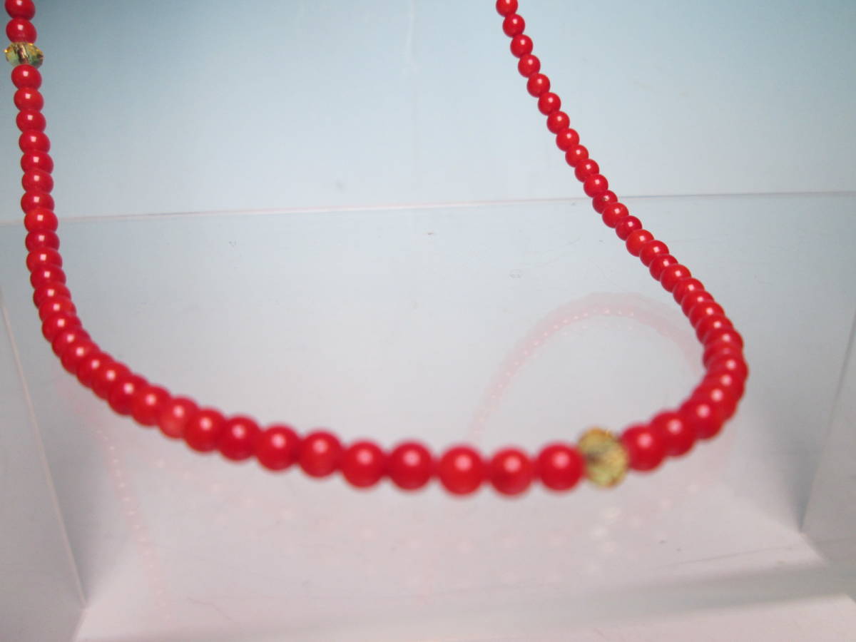 - ★SILVER 血赤珊瑚玉 3,5mmと黄水晶のネックレス 8g