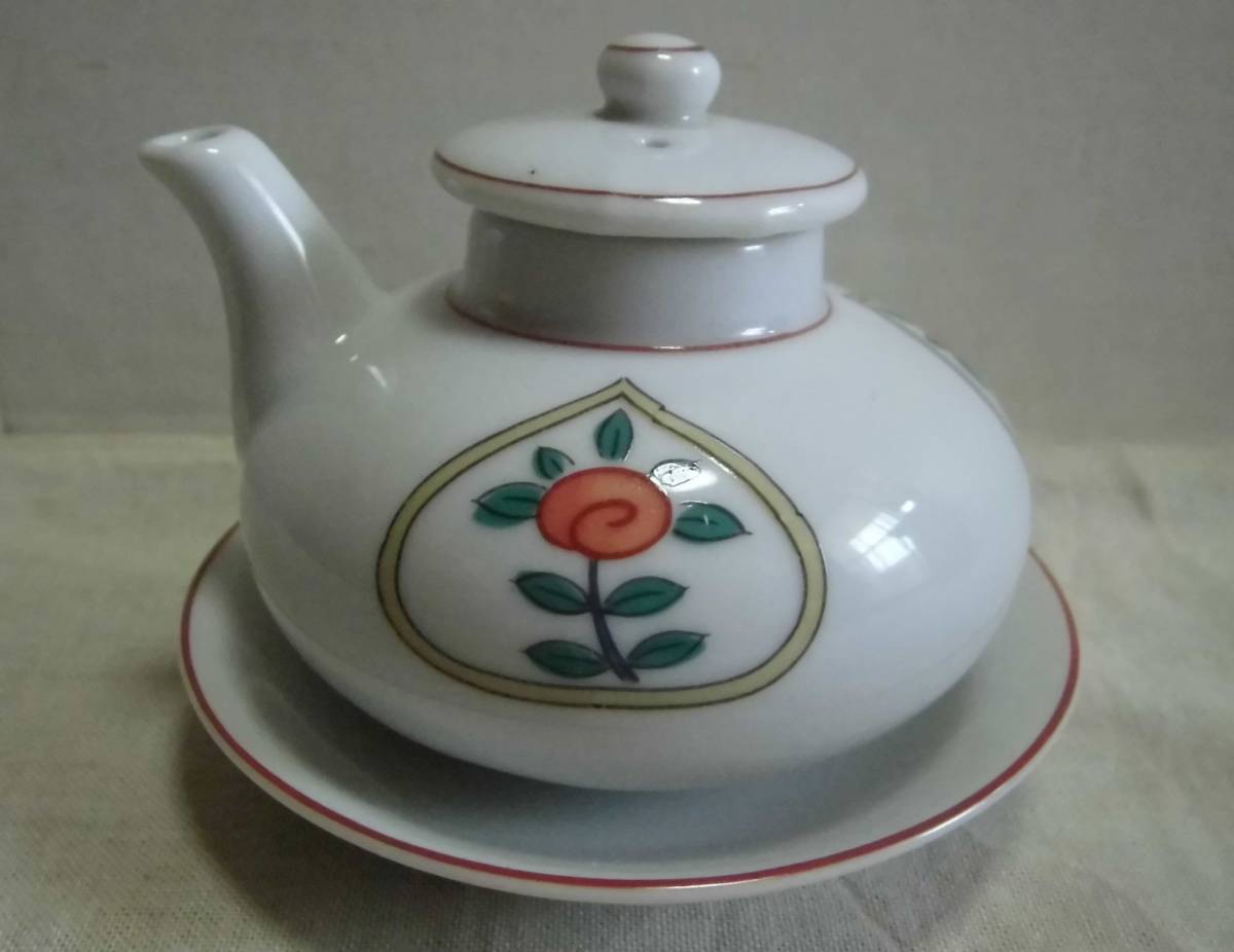 - 醤油差し 花柄 受け皿付き 色絵 橘 調味料入れ 容器 水差し 水滴などに 陶器 工芸品 レトロ アンティーク