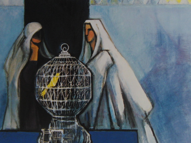 - 神戸文子、【籠の鳥】、希少な大判額装用画集より、美品、日本人画家、新品額装付、送料込み