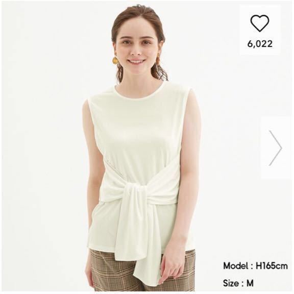 > GU/ジーユー ウエストリボンT ノースリーブ オフホワイト M