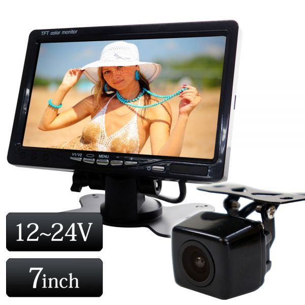 - 7インチ オンダッシュモニター + バックカメラ セット 解像度 480×RGB×234 IP67 ガイドライン 正像鏡像 切り替え 広角120度