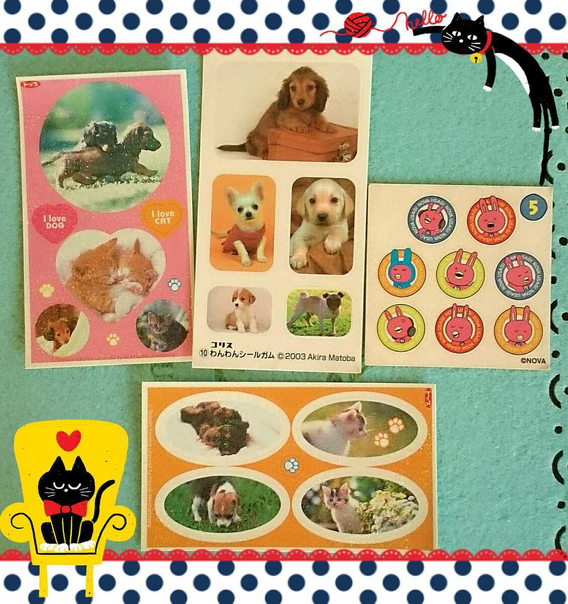 - 【懐かしい!・かわいい♪】 NOVAうさぎ 犬&猫 食玩・ガム おまけシール4点セット キラキラ ラメ入りシール 2000年代初頭 2003