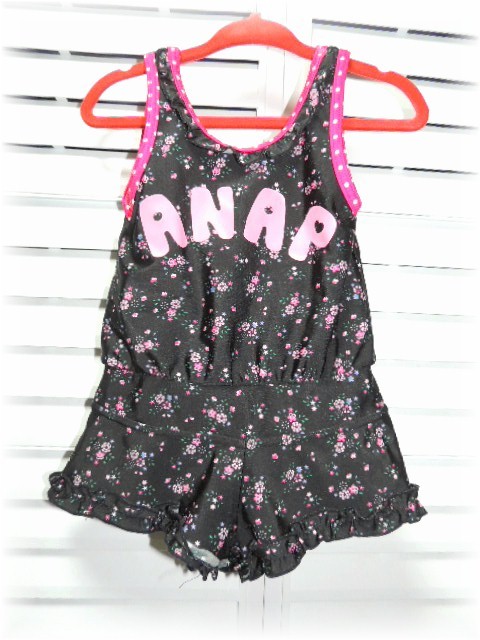 > ANAP Kids ショートパンツ型 ワンピース水着 90cm ブラック×小花柄 ショーツ・短パン一体型