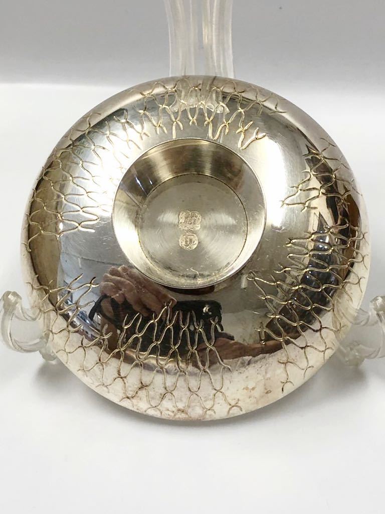 - 生駒時計店謹製 純銀 網目文酒盃(共箱共栞)75.12g