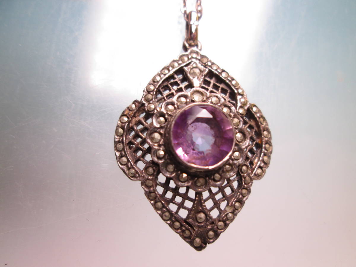 - ☆SILVER マーカサイト&アメジストペンダントネックレス 8,28g
