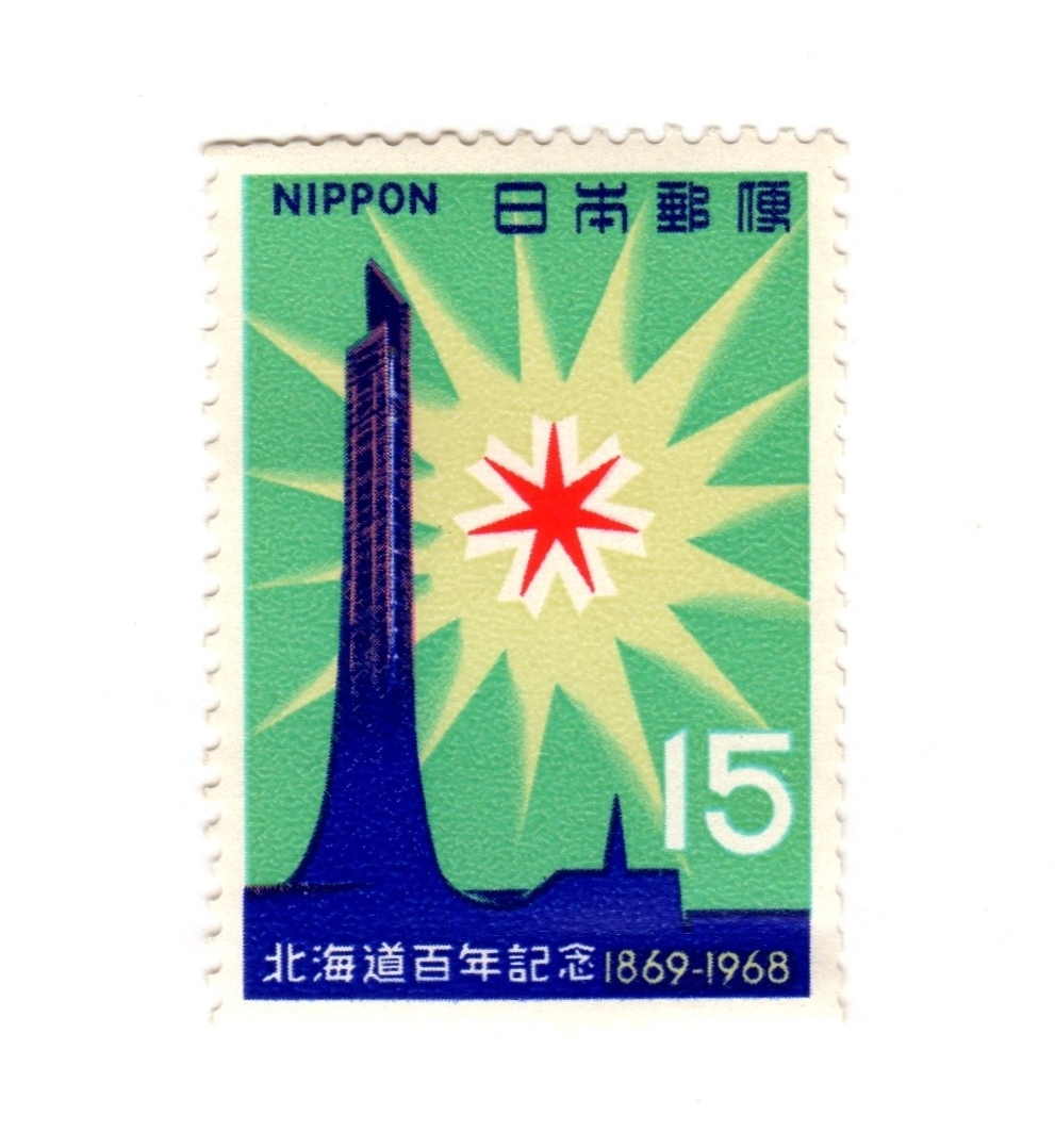 - 昭和43年1968「北海道100年記念/記念塔と北海道章」15円切手・未使用【送料無料】「熊五郎の切手」00800379