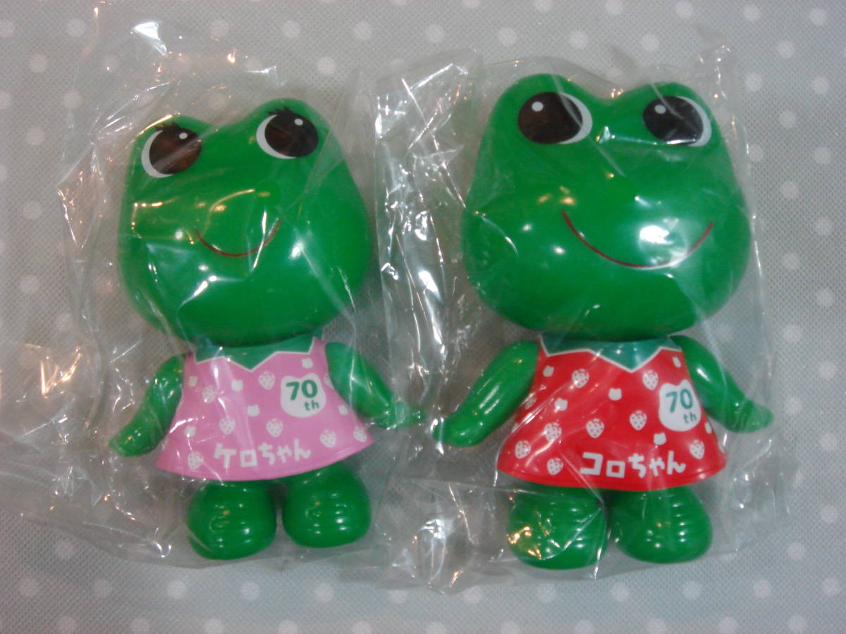 > ケロちゃん & コロちゃん ソフビ人形 70周年限定 いちご柄 興和 キューピーコーワ カエル 70th 数量限定 マスコット 非売品
