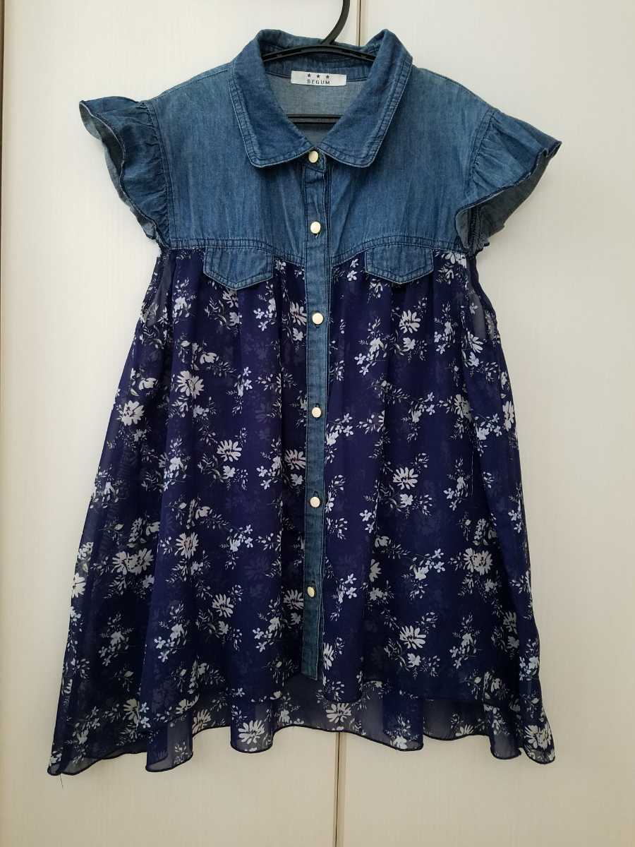 - 花柄フリルブラウス 160/S デニム/紺ネイビー