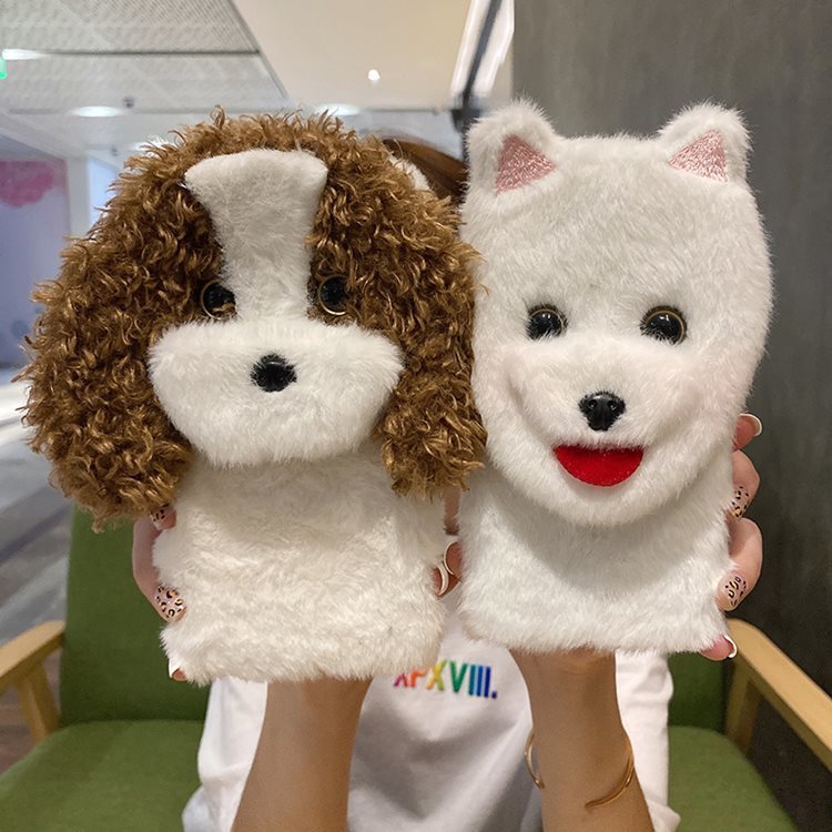- iPhone 12 Pro Maxケース Apple 6.7インチ スマホケース 保護カバー 背面カバー もこもこ 秋冬 スタンドタイプ 犬 かわいい