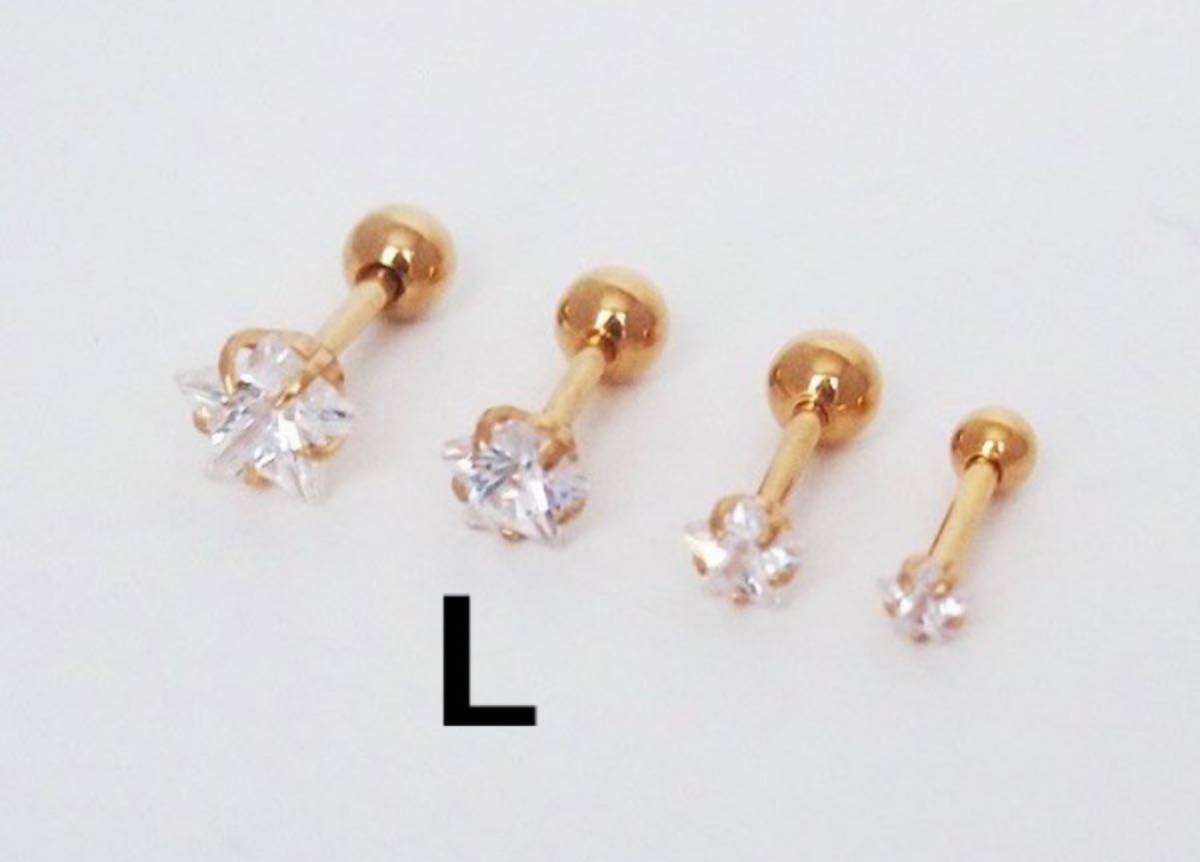 - ボディピアス/星ジュエル 立て爪 ストレートバーベル/16G ゴールド軸×クリア (L) 1個
