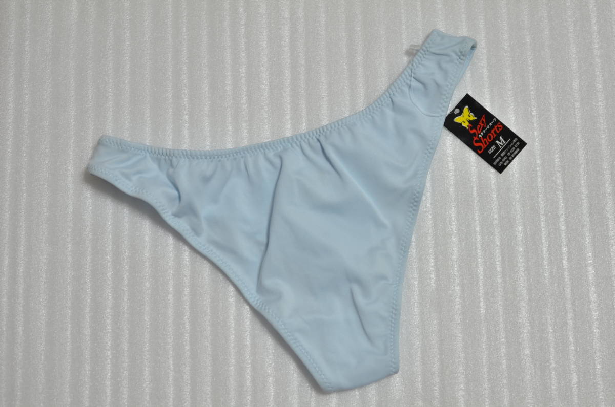 - 『送料無料』★シンプル★ツルツル光沢 Tバックショーツ★無地★ 淡い水色 ★ Mサイズ ★