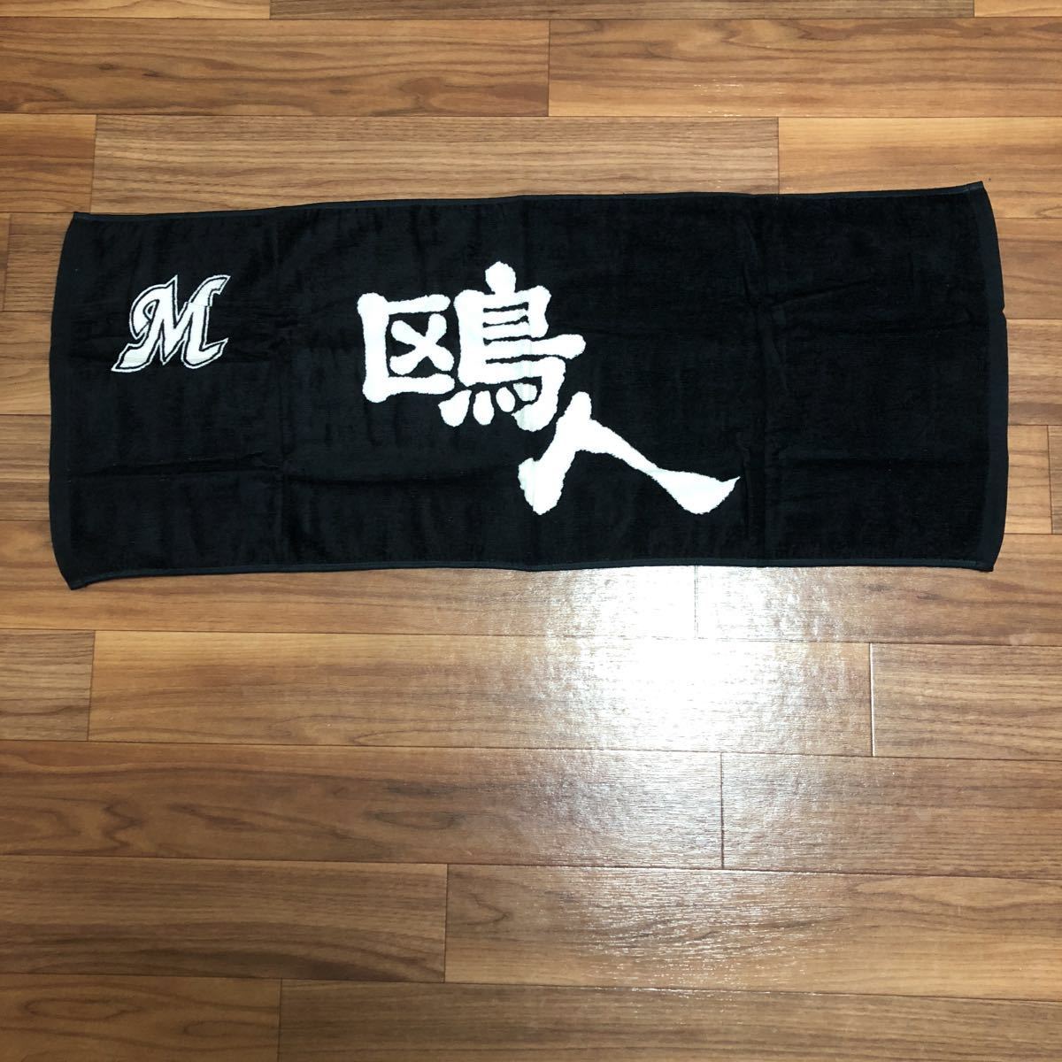 - 千葉 ロッテ マリーンズ 鴎人 フェイスタオル ブラック ビジター 新品未使用品