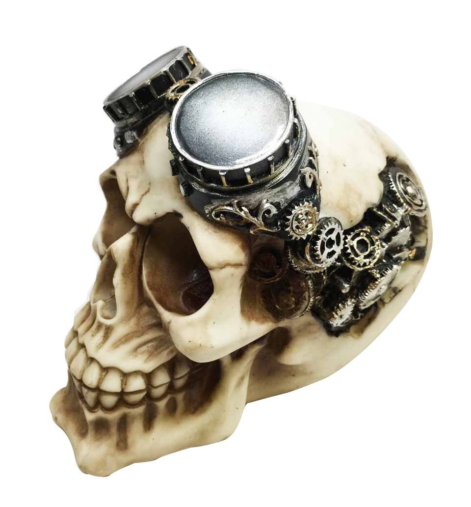 > スチームパンク風 パイロット ゴーグルを被ったスカル(頭蓋骨)彫像 彫刻/ 死の聖人 死者の日 サンタムエルテ プレゼント贈り物 (輸入品