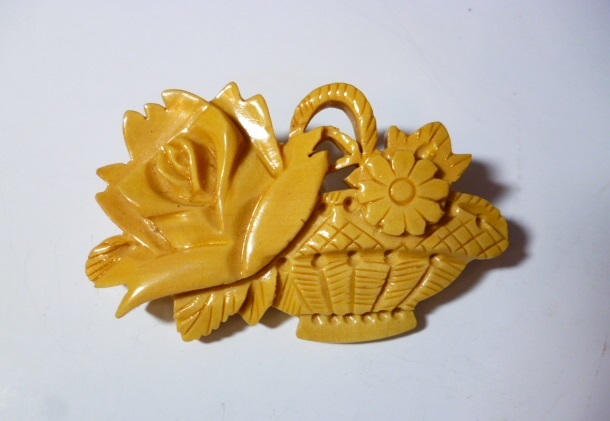 - Ж 木製細工 籠に薔薇菊 帯留め Ж