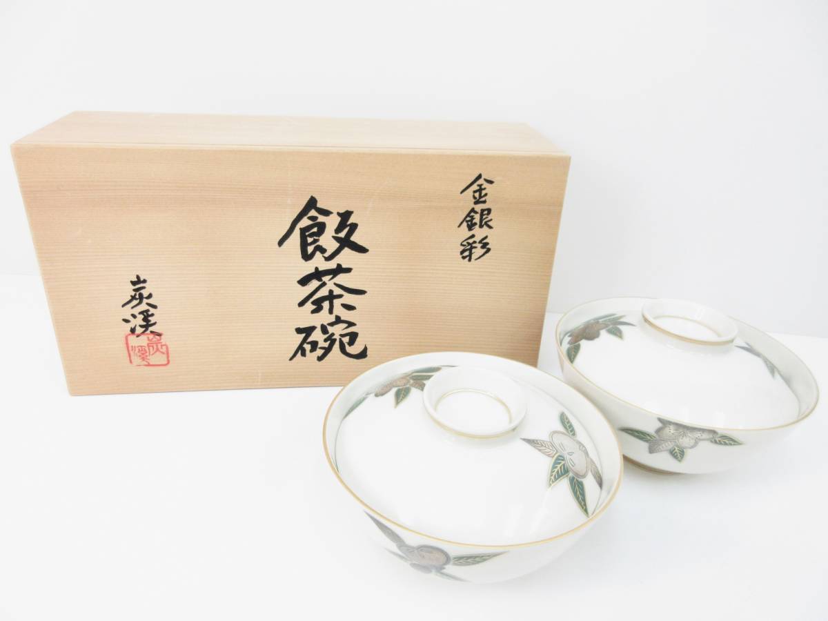 > 未使用品▼京焼清水焼窯元 炭渓 飯茶碗 金銀彩 2セット 花柄 2客セット 管理2012 Y-9