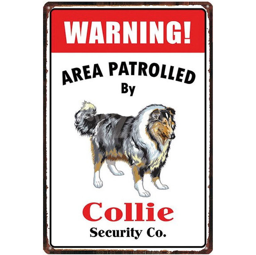 > A2431 メタル サイン ブリキ 看板 金属 製 プレート 店 注意 警告 危険 防犯 動物 ペット 犬 番犬 猛犬 コリー 【3703】