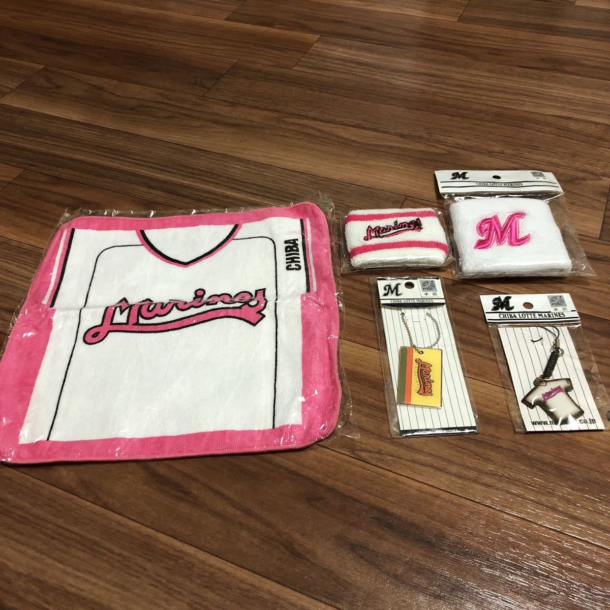 - 千葉 ロッテ マリーンズ ピンクユニ ミニタオル リストバンド ストラップ キーチェーン 新品未使用品