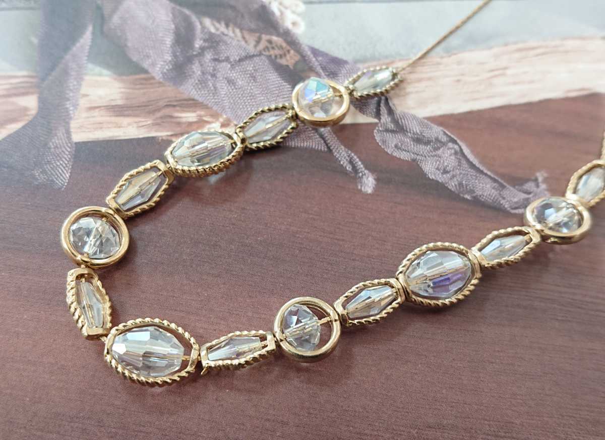 - □煌めき&エレガント□オーロラカラークリアビーズ&華奢なゴールドカラ―チェーンのロングネックレス□