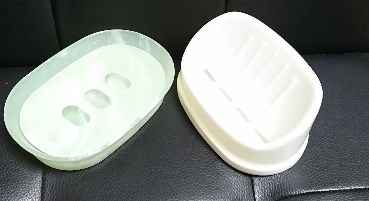 - 美品 水切り出来る 石鹸ホルダー 石鹸入れ 浴室 2個セット 洗面所 雑貨 消毒 白色 マーブルグリーン プラスチック