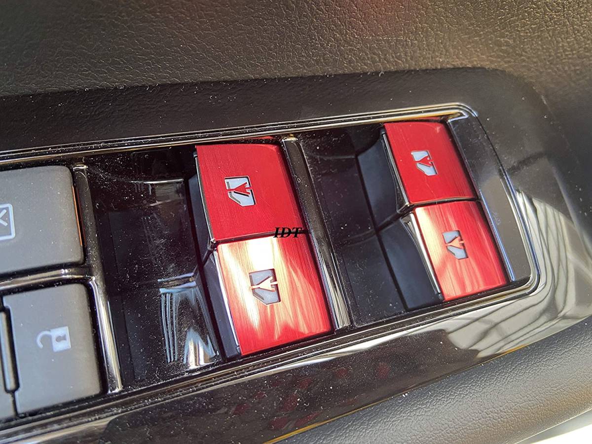 - 80系 エスクァイア アルミ パワーウインドウ スイッチ カバー 赤 ボタン ガーニッシュ 7個セットカスタム パーツ 簡単取り付け 前期 後期