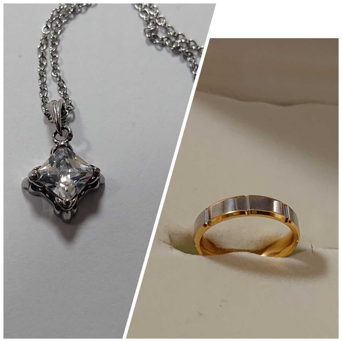 - □シルバーカラー&ゴ―ルドカラ―のリング・クリアストーンのペンダント2点セット□12号□