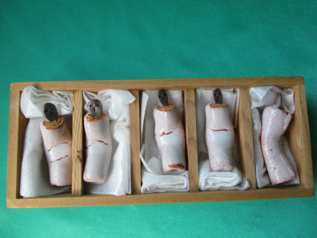 - 萩焼? ユニーク 謎のぐるぐる巻き人間 陶製 箸置 5客セット 未使用品