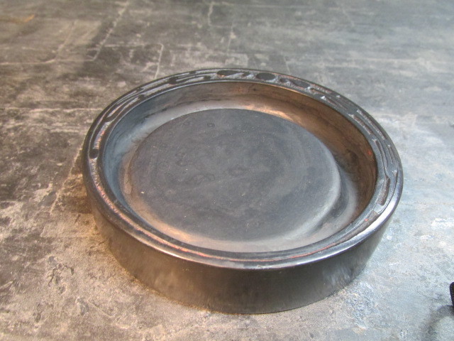 - 雨畑石 彫刻入り 円式硯 和硯 雨畑硯 書道具 木箱