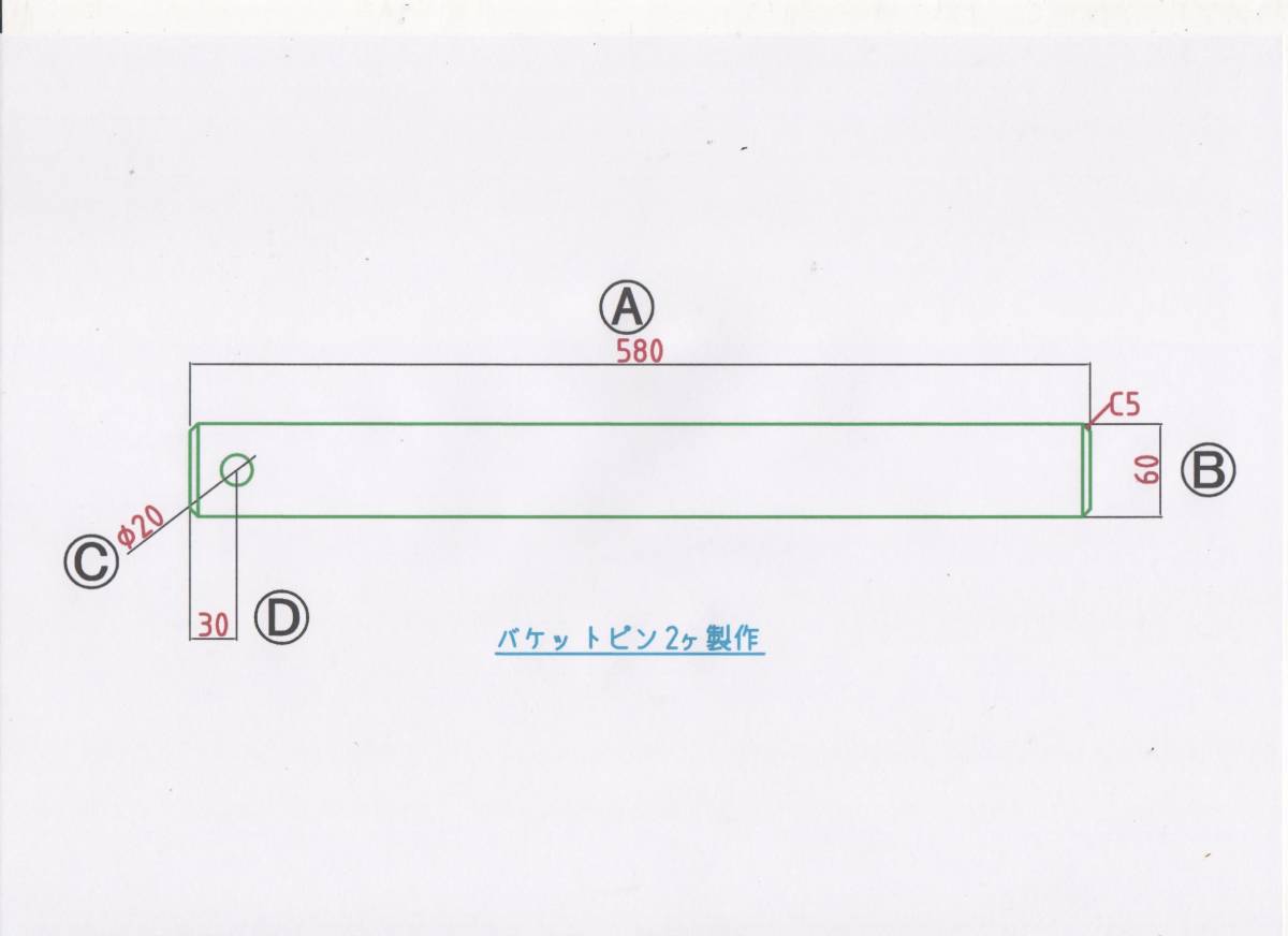 - NO 460 Φ60用 全長580mm バケット ピン 2本セット /アタッチメントブッシュ2個セット