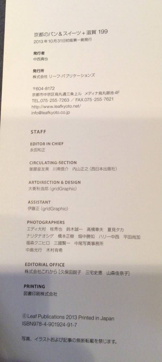 - 中古品 Leaf 京都のパン&スイーツ+滋賀199 2013年初版 第一刷発行