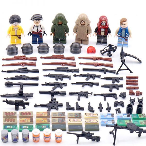 - MOC レゴ 互換 PUBG (PLAYERUNKNOWN'S BATTLEGROUNDS) カスタム ミニフィグ 6体セット 大量武器・装備・兵器・アイテム・エアドロップ付き