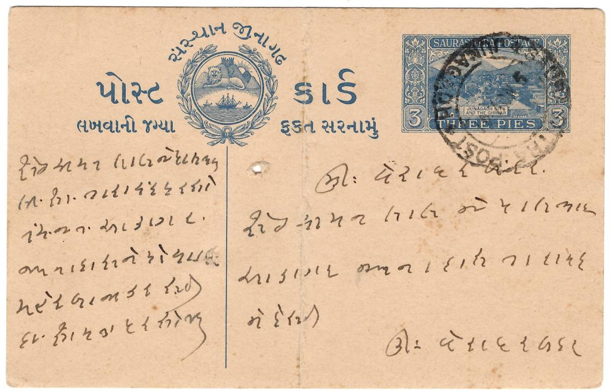 - インド藩王国ソラトー 1941 首都ジュナガド図案 3パイサ葉書