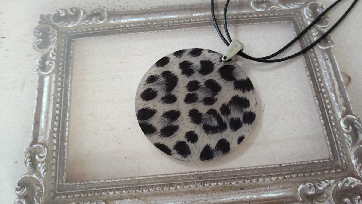- □グレー×ヒョウ柄・サークルプレート・ネックレス□