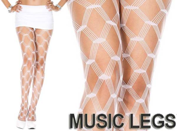 > A401)MusicLegsダイヤモンドネットタイツ ML5042 白 ホワイト ストッキング レディース ダンス 衣装 パーティー ミュージックレッグス
