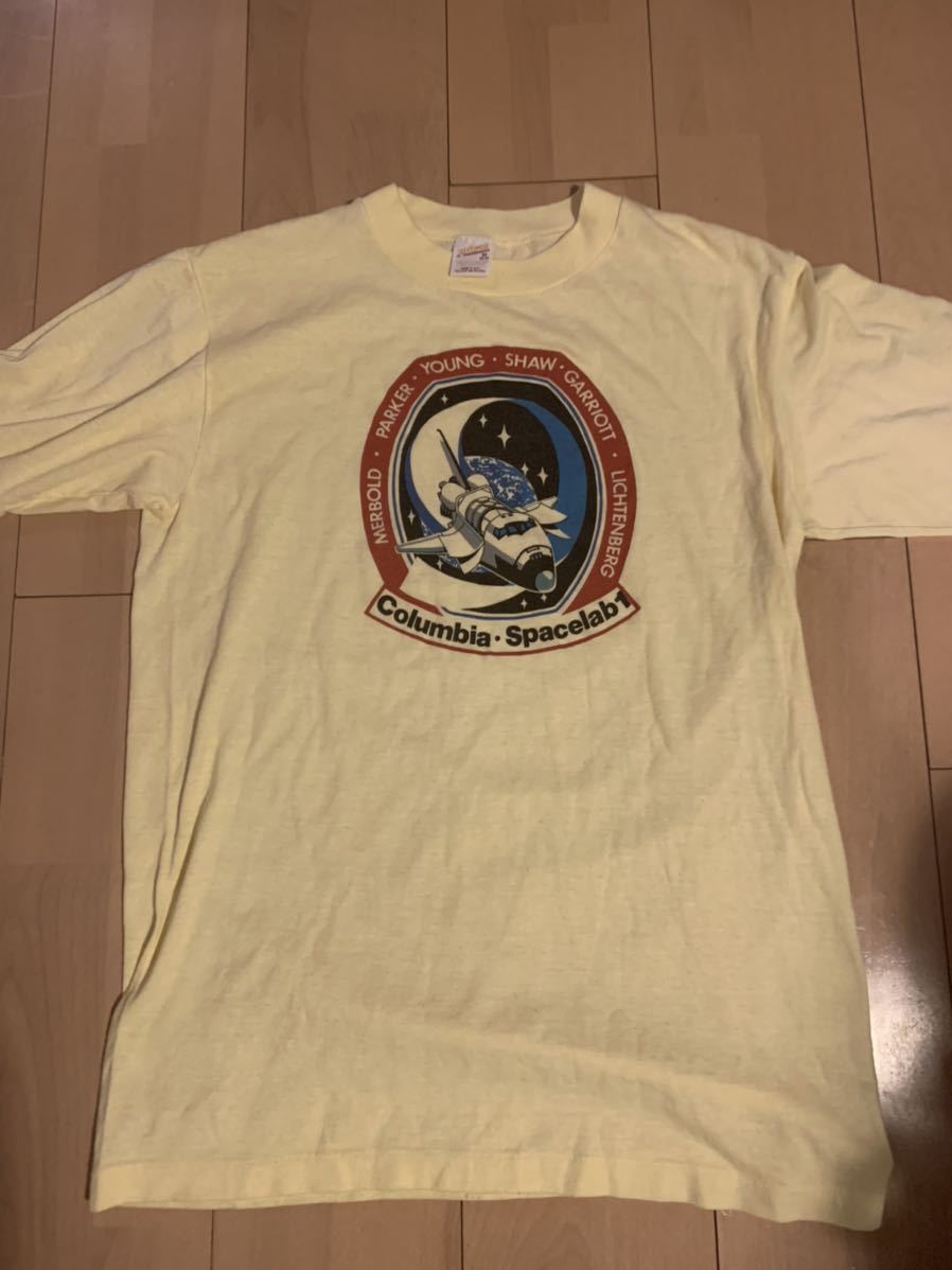 > 70s 80s【SPORTSWEAR】NASA Tシャツ ビンテージ USA製 イエロー sportswear 前面プリント vintage STS-9 Jaxa RUSSEL