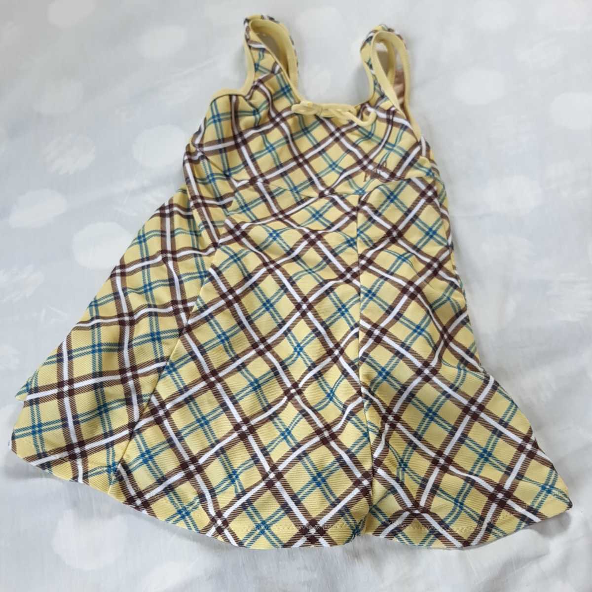 - ワンピース水着 女の子 120サイズ polo 落ち着いた黄色系チェック柄 ソフト感あり 記名があり 210423