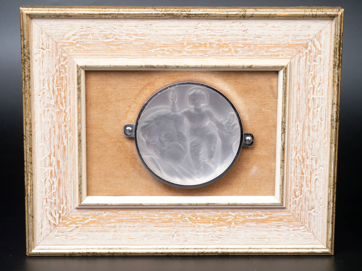 - 【値下げ交渉有り】 希少 Lalique ラリック クリスタル フロステッド 聖父子 幼児イエスを抱く聖ヨセフ メダリオン 壁掛 飾り物 額装付