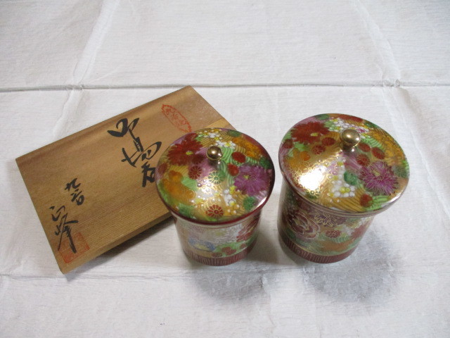 - 九谷 正峰 共箱 未使用 湯呑 色絵 金彩