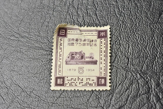 - 【切手】 1879-1954年★国際電気通信連合加盟周年記念★未使用なれど難あり★5円★