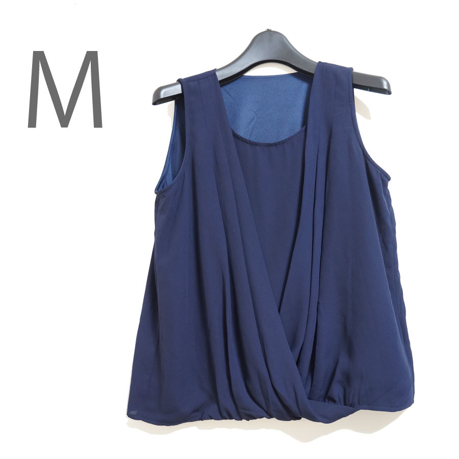 - ●サンプル品/ジョーゼット/カシュクール/ブラウス/ネイビー系/M/モデル丈/レディース●f8214