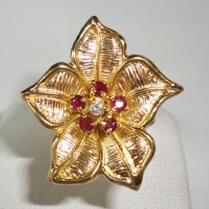 - 送料無料 k18花をモチーフにルビーダイヤ素敵なリングused サイズ11号 質屋出品