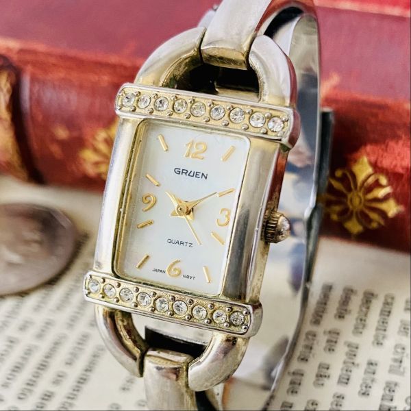 > 【高級時計グリュエン】Gruen クォーツ デイト 腕時計 レディース ビンテージ ブレスレット カクテル ウォッチ クリスタル